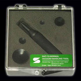 ● 本產(chǎn)品采用美國MTI技術(shù),獨特的吸盤結(jié)構(gòu),并提供六種吸盤尺寸:3.2mm/6.4mm/9.5mm/12.5mm/16mm/19mm,以適合不同尺寸、不同重量的器件,最大吸力的參考值為3g/30g/50g/185g/250g/500g。另提供兩種不同特性的材料:A類材料:耐酸堿、耐一般性有機溶劑,耐高溫,顏色為暗棕紅色;B類材料高溫導電材料,顏色為黑。