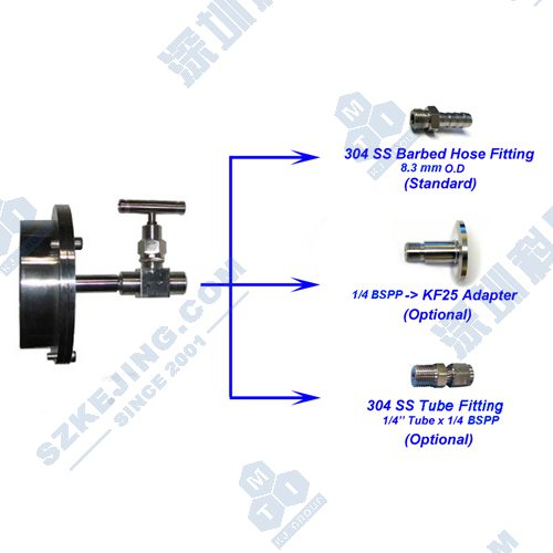 ![]() ● 不銹鋼密封法蘭(左端進(jìn)氣口為1/4”軟管接口, 右端抽氣口為KF-25接口,圖1) ● 標(biāo)準(zhǔn)的1/4“帶針閥的寶塔嘴接口 ● 為了可以使用高壓氣體,您可以用1/4"軟管接頭替換標(biāo)準(zhǔn)寶塔嘴管接頭(圖2) ● 可選:為了達(dá)到高真空,可以用KF25轉(zhuǎn)接頭替換標(biāo)準(zhǔn)寶塔嘴接頭 ● 可選真空連接: ● 本公司進(jìn)口的防腐型數(shù)字式真空顯示計(jì),其測(cè)量范圍為3.8x10-5 至 1125 Torr. 不需因測(cè)量氣體種類不同而需要系數(shù)轉(zhuǎn)換。(圖3) ● KF25不銹鋼波紋管(圖4) ● KF25快速裝卸卡箍(圖5) ![]() 圖1 圖2 圖3 圖4 圖5 |