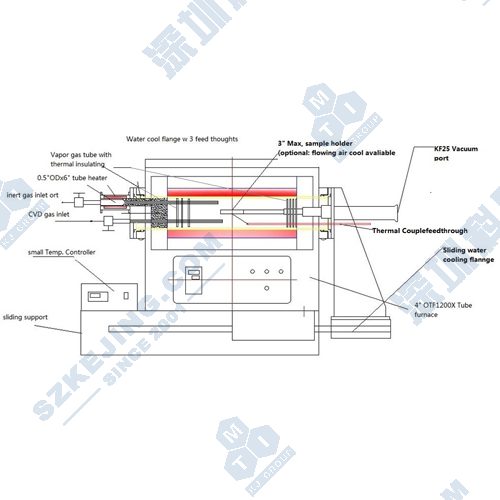 OTF-1200X-4-NW是一種緊湊型CVD爐,專為生長各種納米線而設(shè)計(jì),基片最大3英寸. 在法蘭的左側(cè)裝有一個(gè)小加熱器,可對輸入的氣體、液體、固體進(jìn)行預(yù)加熱,然后 進(jìn)入 CVD 爐進(jìn)行納米線的生長, 可滑動(dòng)的樣品架使操作更為簡單.