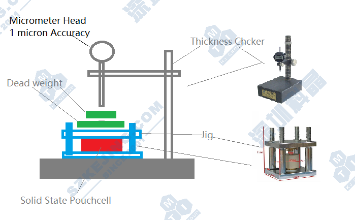 應(yīng)用范圍:JIG-1是一款機(jī)械夾具,專門用于固定固態(tài)電池或液流電池測(cè)試套件,并對(duì)電池加壓。同時(shí)也可與配重塊和測(cè)厚儀配合,來測(cè)量固態(tài)電池材料的膨脹壓力和膨脹率