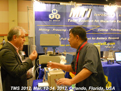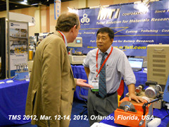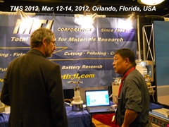 科晶聯(lián)盟-美國MTI參加在美國弗羅里達-奧蘭多召開的 TMS 2012 ( 第143屆)年會。 這場年會是世界上最大的金屬冶金學(xué)術(shù)會議, 有近4200人參加, 其中國內(nèi)有近200人參會。
