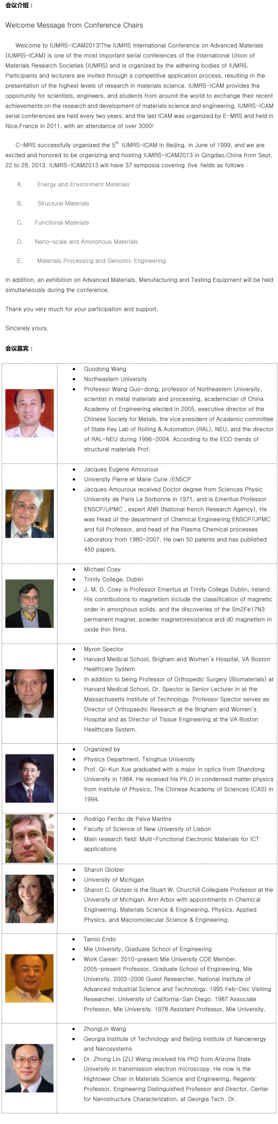 2013國際先進材料大會( IUMRS-ICAM2013 )于2013年9月23-25日在青島國際會展中心隆重舉行。