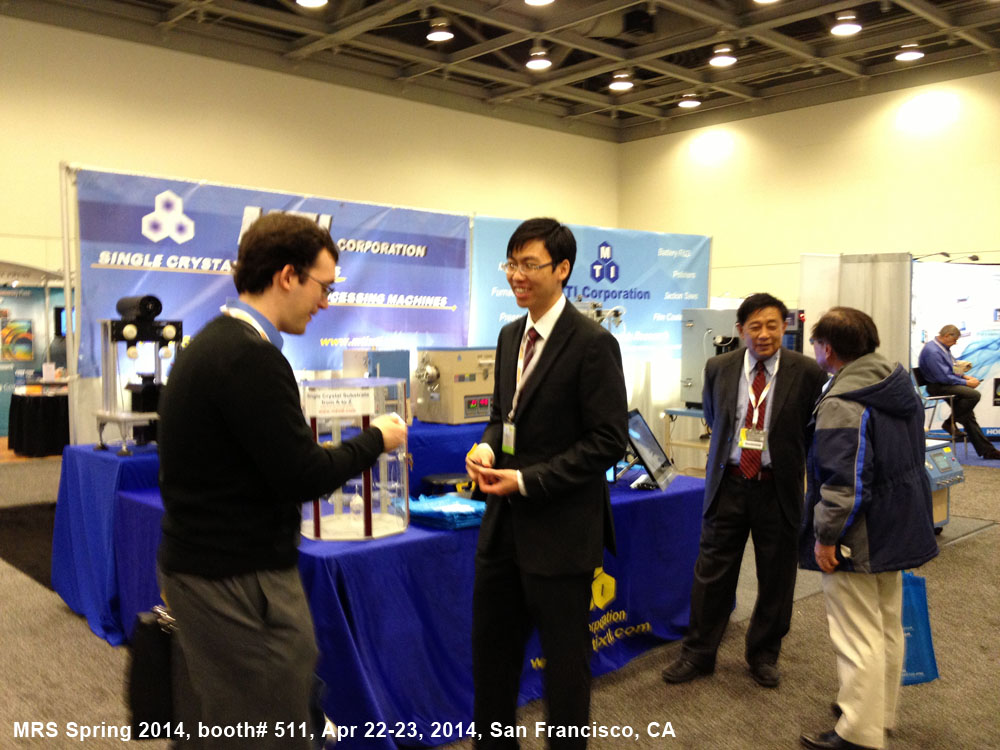 科晶聯(lián)盟-美國(guó)MTI參加在美國(guó)舊金山舉行的 2014 MRS Spring 會(huì)議(材料研究春季會(huì)議)。在此會(huì)上正式宣布,由MTI-科晶董事長(zhǎng)江曉平捐款建立的“MRS博士后獎(jiǎng)金”將從2014年秋季開始, 每年從全球挑選獎(jiǎng)勵(lì)4名博士后。