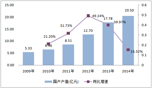 圖5 2009-2014年全球隔膜產(chǎn)值:億美元