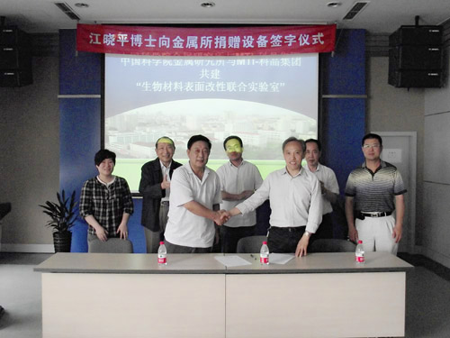 正值中國科學(xué)院金屬研究所建所60周年的喜慶時(shí)機(jī),曾在金屬所獲得博士學(xué)位的美國MTI-科晶集團(tuán)公司總經(jīng)理江曉平先生向金屬所專用材料與器件研究部的生物醫(yī)用材料與器件課題組捐贈(zèng)了4套其自行研發(fā)和生產(chǎn)的材料研究專用設(shè)備,包括:可滑動(dòng)式PE-CVD管式爐(專利產(chǎn)品)、3溫區(qū)管式熱處理爐、金剛石低速切割機(jī)、自動(dòng)壓力金相拋光機(jī)。專用器件研究部主任楊柯研究員代表課題組接受了捐贈(zèng)設(shè)備,并于6月4日與江曉平博士共同簽署了金屬所與美國MTI-科晶集團(tuán)共建“生物材料表面改性聯(lián)合實(shí)驗(yàn)室”的協(xié)議書。江曉平博士當(dāng)年的導(dǎo)師胡壯麒院士、金屬所科技處副處長王忠良等參加了簽字儀式。