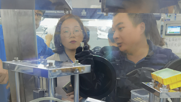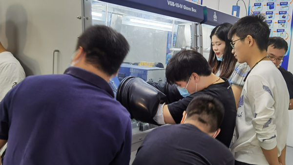 ——學(xué)員在手套箱環(huán)境下組裝扣電