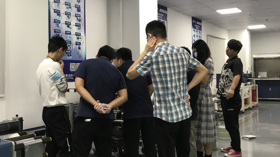 經(jīng)過為期一天的扣電制作,緊接著就是疊片軟包電池的制作工藝培訓(xùn)。與扣電培訓(xùn)流程一樣,首先是實驗室主管袁謝謝為大家進行疊片軟包電池的制作工藝PPT講解,結(jié)束之后帶領(lǐng)大家到實驗室一步步開始制作。