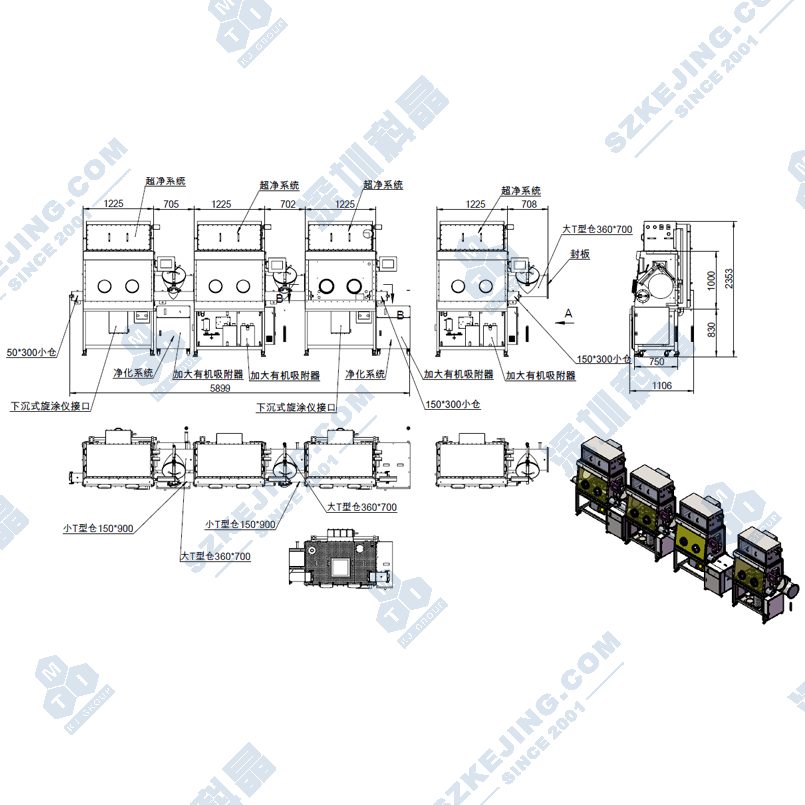 應(yīng)用范圍:本手套箱為四聯(lián)體雙面操作手套箱,4個(gè)單獨(dú)的箱體中間通過過渡艙連接,集成有2套獨(dú)立的超級凈化系統(tǒng),2套 PLC控制及觸摸屏操作,帶有傾斜的操作面和可拆卸的安全玻璃前窗;其中箱體1和箱體2共用一套凈化系統(tǒng),可單獨(dú)清洗,單獨(dú)循環(huán),單獨(dú)控制壓力;箱體3和箱體4共用一套凈化系統(tǒng),可單獨(dú)清洗,單獨(dú)循環(huán),單獨(dú)控制壓力。在標(biāo)準(zhǔn)狀況下,即250C 恒溫,一個(gè)標(biāo)準(zhǔn)大氣壓,99.999%的惰性氣源,水氧指標(biāo)可達(dá)小于1 ppm。