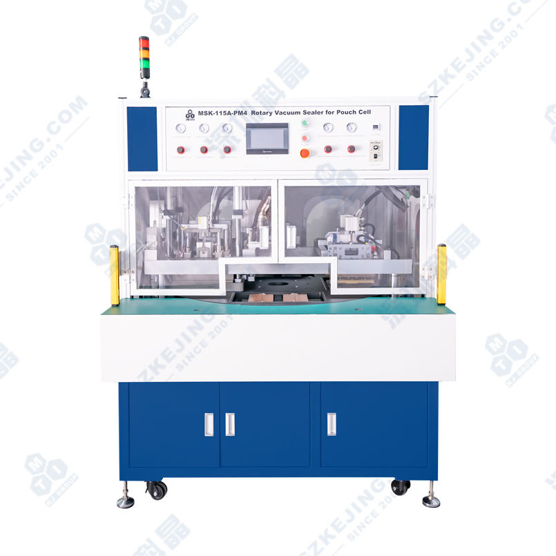 應(yīng)用范圍:MSK-115A-PM4 四工位轉(zhuǎn)盤式終封機(jī)可應(yīng)用于軟包裝鋰電池的附帶刺穿和二次真空終封工藝。本機(jī)采用轉(zhuǎn)盤式設(shè)計(jì), 可實(shí)現(xiàn)人工上下料、自動(dòng)抽真空排氣、刺穿排液、加熱封口等眾多功能。設(shè)備工作腔室真空度保持度好,封口效果優(yōu)質(zhì),電池成品平整度好轉(zhuǎn)。