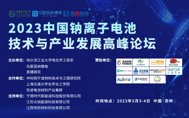 “2023中國(guó)鈉離子電池技術(shù)與產(chǎn)業(yè)發(fā)展高峰論壇”于2023年3月3日至4日在中國(guó)蘇州召開(kāi),本次論壇會(huì)議由馬里亞納鋰電、真鋰研究、哈爾濱工業(yè)大學(xué)電化學(xué)工程系聯(lián)合主辦,邀請(qǐng)了20+行業(yè)大咖、100+電池及材料上下游企業(yè)、300+鈉電池產(chǎn)業(yè)者共聚一堂,共同探討與交流鈉電池行業(yè)現(xiàn)狀及未來(lái)發(fā)展期望。