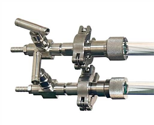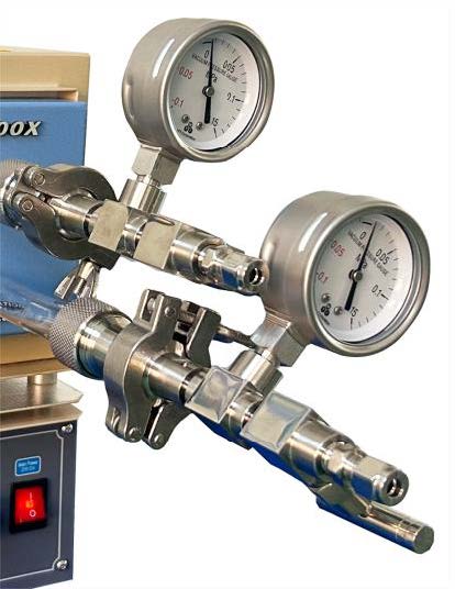 兩套不銹鋼密封法蘭系統(tǒng) 法蘭一端留有G1/4 進氣口,截止閥,機械壓力表 法蘭另外一端留有寶塔嘴出氣口和截止閥 法蘭密封采用O 型圈+壓環(huán)+O 型圈密封方式 法蘭采用KF16 卡箍接口可以快速的取放 |